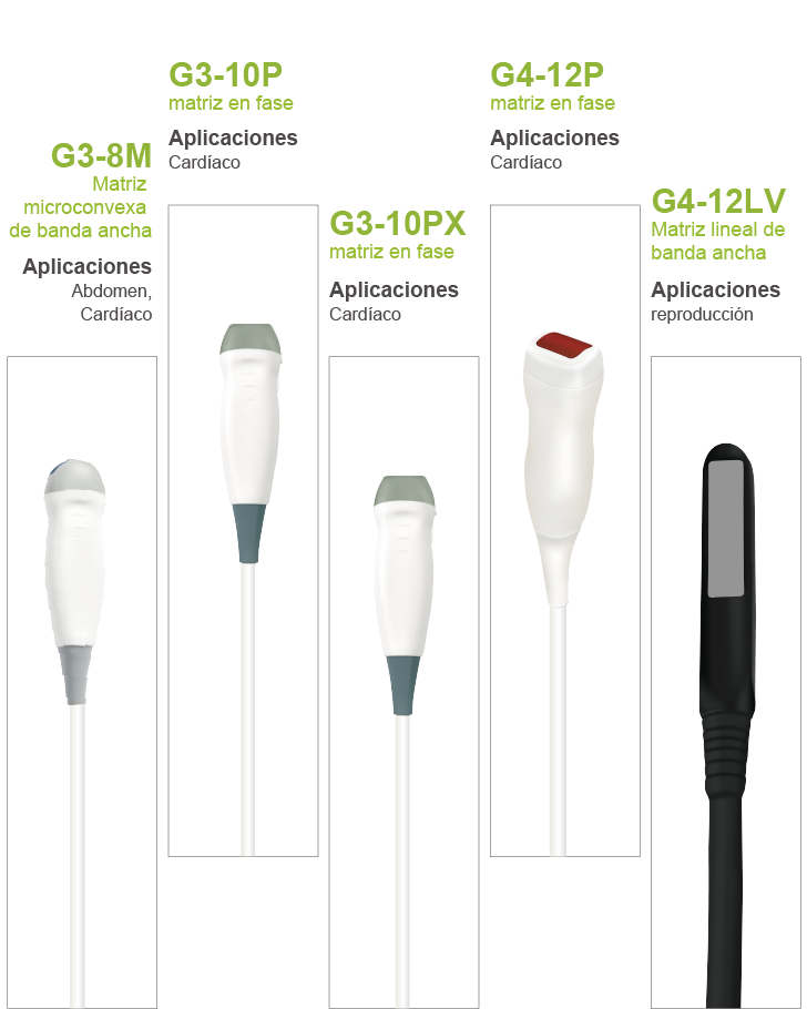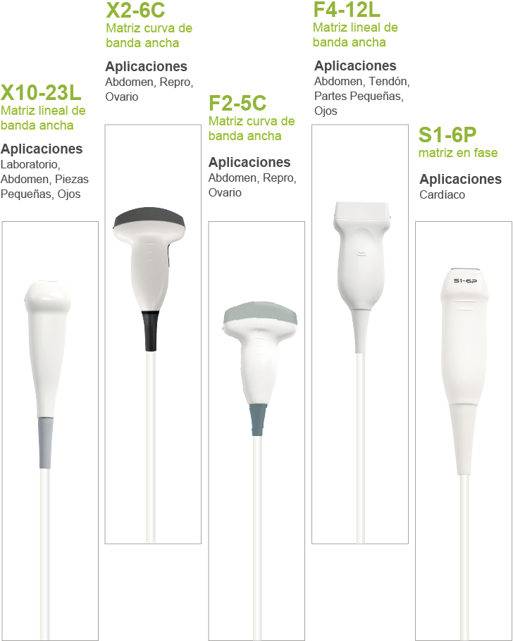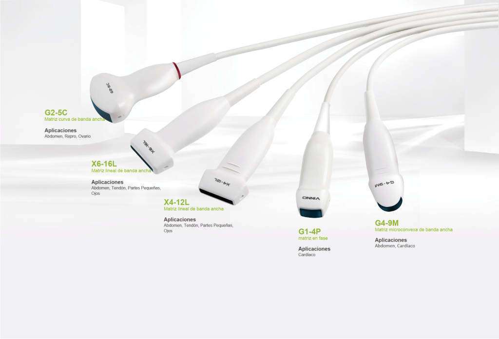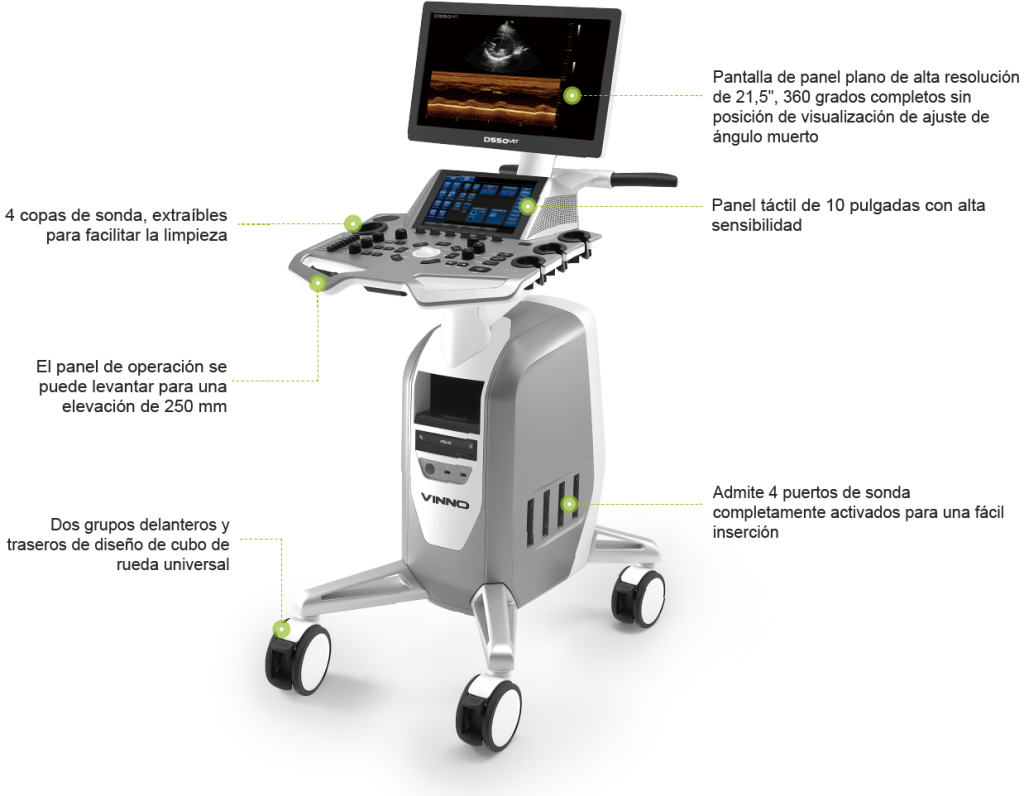 - Dos grupos delanteros y traseros de diseño de cubo de rueda universal, fáciles de mover.4 puertos de sonda completamente activados permiten el cambio de sonda con un clic en el panel táctil.